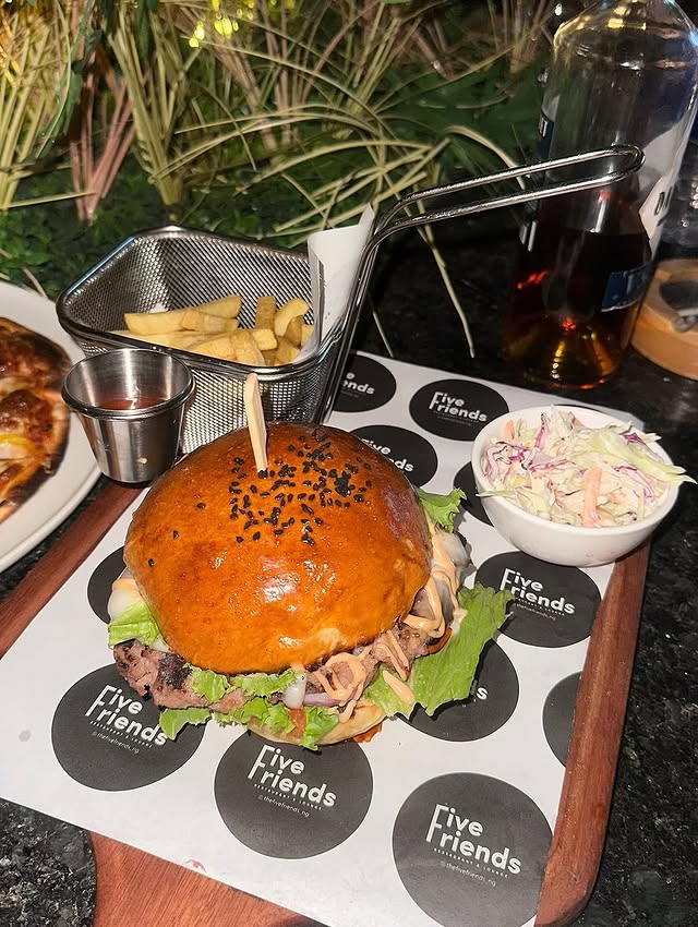 The menu features a mix of Nigerian and continental dishes, including grilled meats, seafood, pasta, and signature cocktails. Their presentation is top-tier, and the flavors are bold and satisfying. Five Friends is also known for its well-curated drink menu, offering everything from classic wines to creative mixology.
